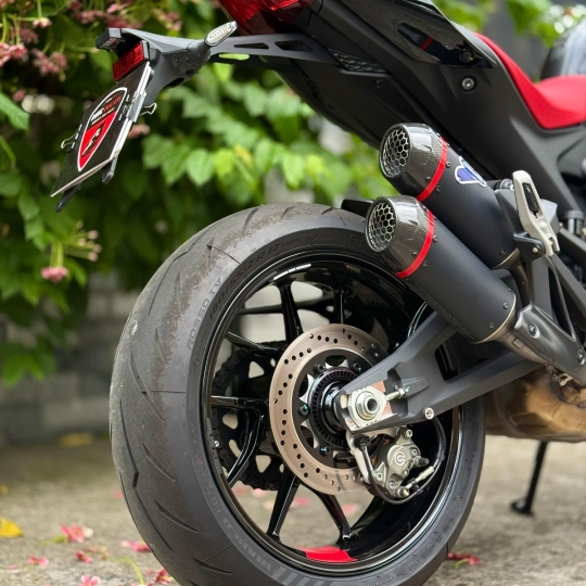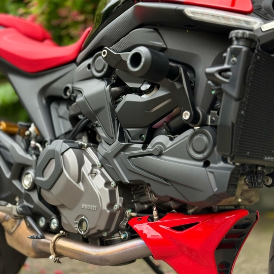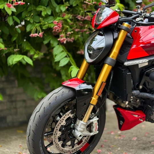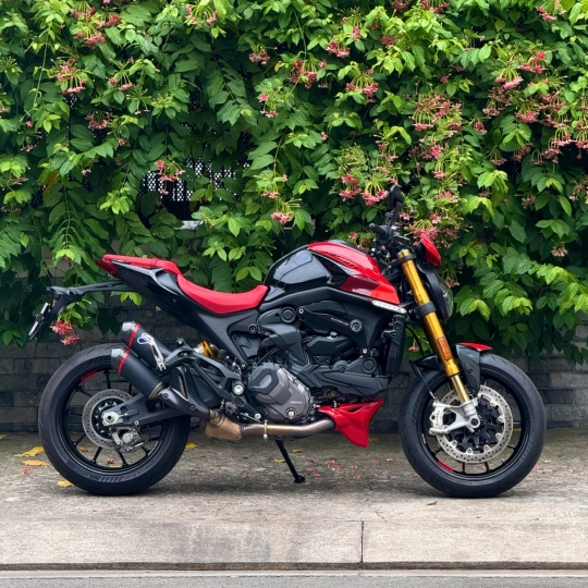 Monster 937 SP mang phong cách tối giản, hiện đại nhưng vẫn giữ được nét đặc trưng của dòng Monster với thiết kế "bison-back" (bình xăng cơ bắp) và đèn pha tròn đặc trưng. Phiên bản SP nổi bật với bộ tem lấy cảm hứng từ MotoGP, sử dụng màu sắc của đội đua Ducati Desmosedici GP 2022, kết hợp đỏ, đen và vàng. Ghế ngồi màu đỏ cùng logo "SP" và cờ Ý trên nắp che ghế hành khách càng làm tăng vẻ thể thao và cá tính